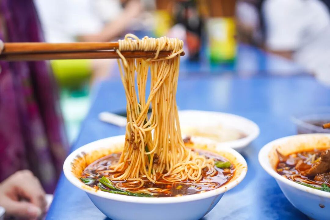 面大多为店家找工厂定制的普通碱面,宽细不等。各家有各家的喜好。