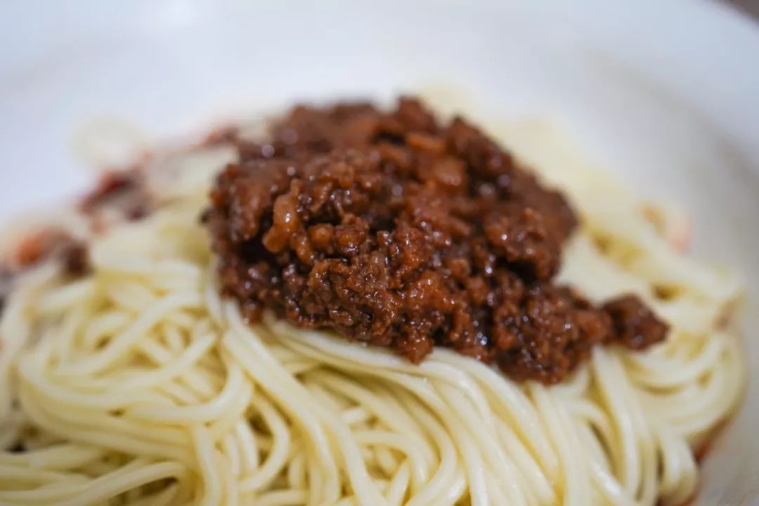 辣椒香气扑鼻,拌在面里其实没那么辣,用那种很有年代感的搪瓷碗,特别有小时候的感觉。