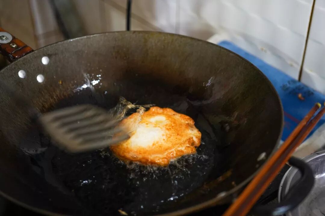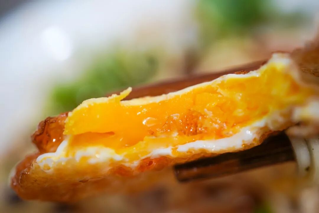 还可以要求店家加个鸡蛋:好吃的煎蛋外皮很脆,内里有微微溏心。