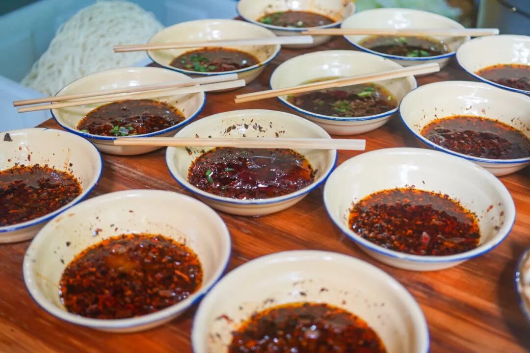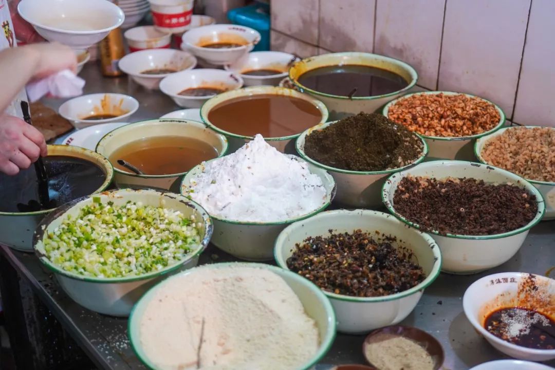 盐、芽菜、姜蒜水、辣椒油、花椒面、猪油......随随便便一碗小面,调料就有十数种。