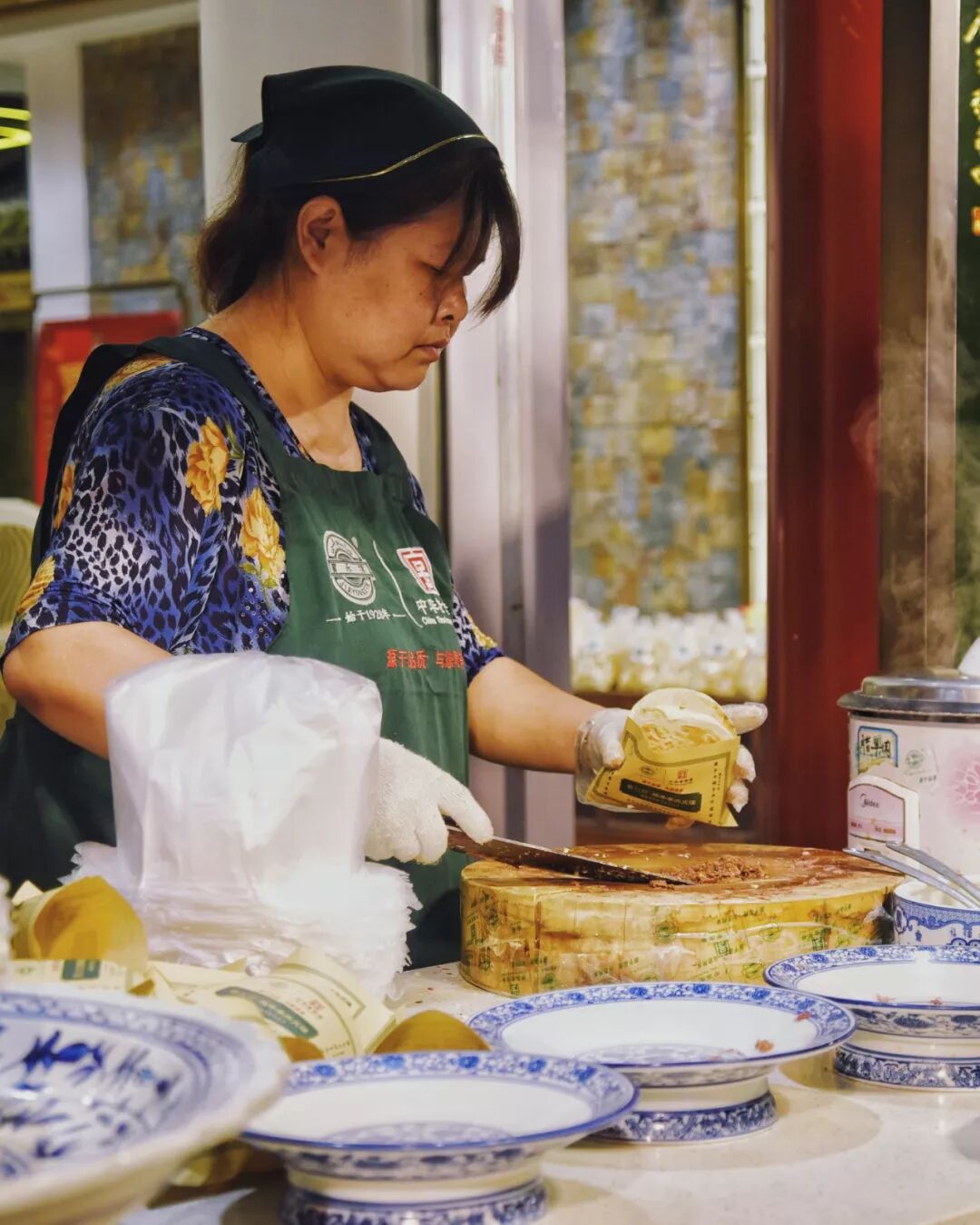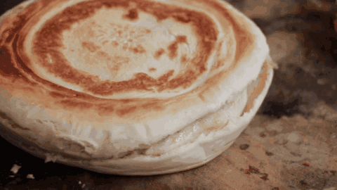 在上鏊子烙制之前,馍胚柔韧的内核已经定性,打馍师傅绵中有力的手法为一个腊汁肉夹馍的高光时刻埋下伏笔。