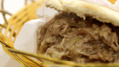 但更被广为接受的还是腊汁肉夹馍所用的白吉馍。白吉馍似乎更符合通俗审美,皮酥脆,瓤松软,夹上在老汤里炖过的猪肋条,连肥带瘦,还拖着淋漓的肉汁,一口咬下去直抵内心深处的澎湃。好吃的夹馍就该这个样子啊。
