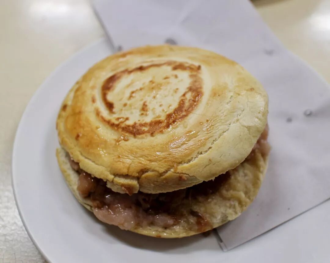 可惜不少老字号都没能守住这个底线,原则崩坏的店大多聚集在回民街上,但隔马路相望的樊记也没能幸免,前段时间陪朋友去吃,到手的馍跟等位的人一样疲惫,朋友宽容,说“铁圈虎背菊花心”不敢奢望,但求一口咬下去不让人误以为是普通发面大饼就好。结果,事与愿违。