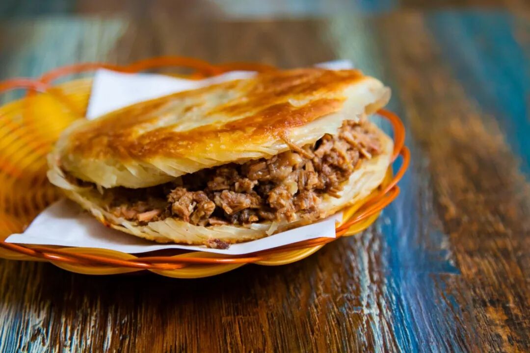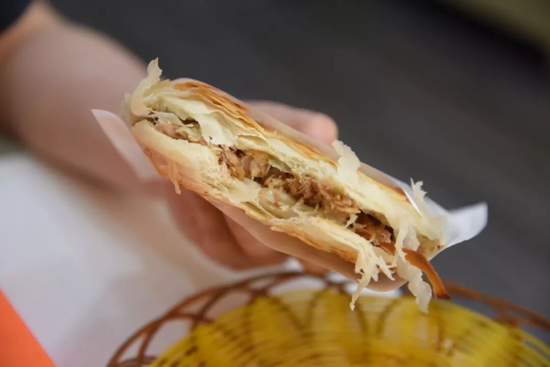 起酥的馍上有不少缝隙,这些都是肉汁和油花的藏身处,从第一口到最后一口都能吃得嘴角滋油真不是大话,否则老潼关这个后起之秀也不会在夹馍圈风靡好一阵,且至今还有余威。