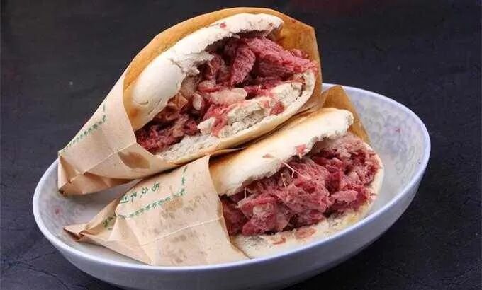 腊汁肉夹馍在西安的群众基础蔚为壮观,不止游客买帐,本地人也难以割舍。虽然“铁圈虎背菊花心”这个最高标准已经成了一句口号,城里坚守这个规矩的打馍师傅日趋减少,夹馍市场的审美也从传统的厚实变成薄脆,仍没有妨碍白吉馍和腊汁肉这个组合带给人的舒服妥帖。