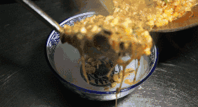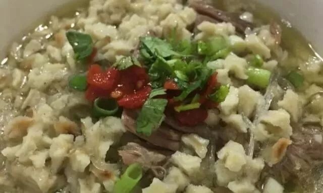 干拔”也叫干拌,或者干泡,一碗泡馍端上来不见汤水,肉汁完全被馍粒吸收,吃起来味道浓郁,口感粘滑,要达到这样的效果,需要较长时间的煮制。