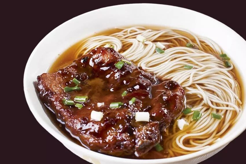 面条的暗语简洁明了,仅有硬面软面之分。汤有宽汤紧汤无汤,与之对应的是汤多汤少干拌,也有白汤红汤之分,前者就是用鳝骨、猪骨、鸡肉、火腿等吊出的一锅清汤,色清味醇,是一碗面的基调,后者色如浓茶,是在白汤里加了红烧肉或者红烧大排的酱汁,所以即便配的是素浇头,吃红汤面一样有扑鼻的肉香。