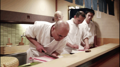 学习寿司还得花费至少3年时间里学会怎么准备大米,8年时间里才能学会怎么把寿司按进寿司卷。所以这么算下来,没个十五年二十年功夫,你都没法出师。