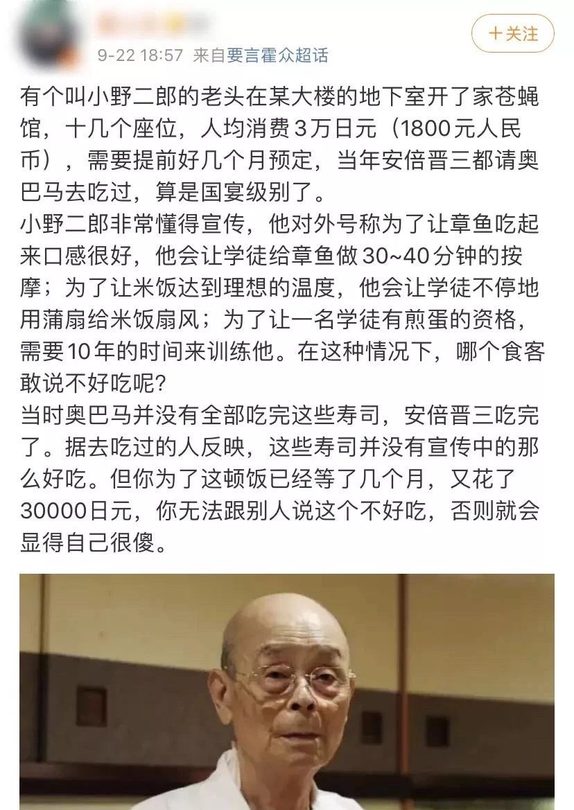 说真的,这难道不是一种过度“神化”吗?“寿司之神”没有错,错的是我们太迷信造出来的神了。