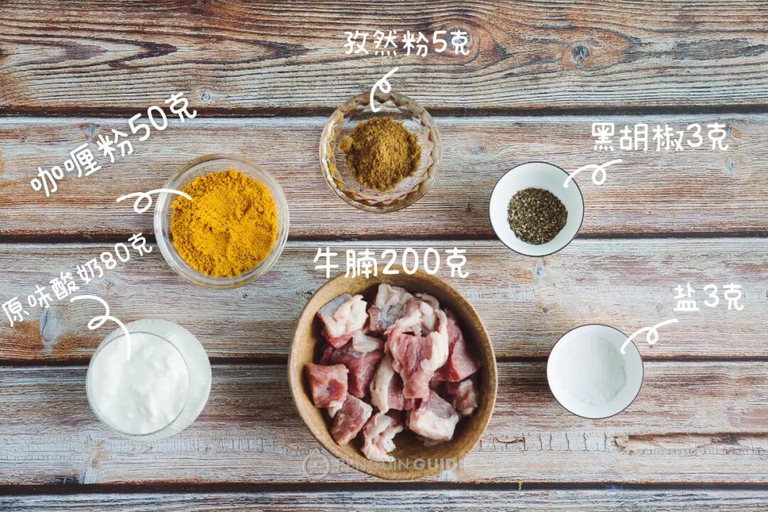 又香又niong的酸奶咖喱风 超级香浓,有点特殊的香气炸弹 🥩牛腩可等量替换成:✅鸡胸肉 ✅猪排肉 ✅羊肉 ✅鱼肉 🕐推荐腌制时长:冷藏1-2小时,可过夜腌制(酌情减少孜然粉)