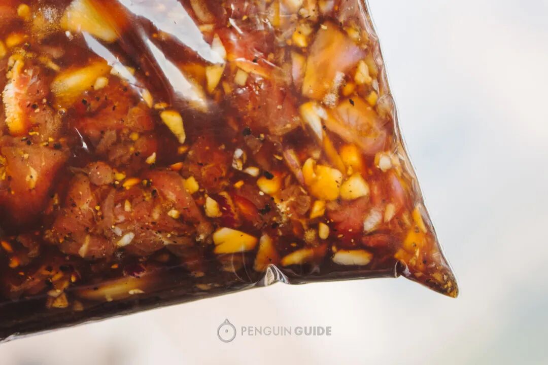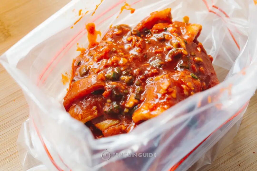 不想多洗一个碗的话,可以直接在密封袋里放入调料,揉匀,连手都不会脏👍。