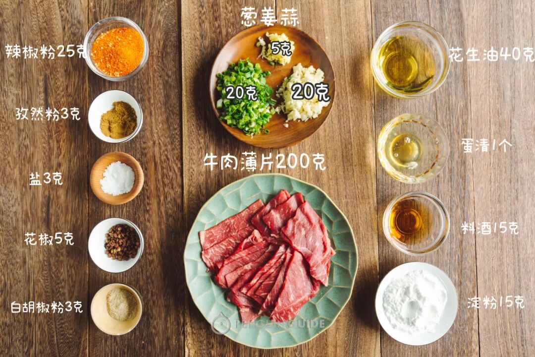 牛肉切5mm的薄片,长大约5cm左右就好,步骤还是把所有腌料搅拌揉匀,然后腌制30-60分钟即可。牛肉薄片,中火下锅翻炒3分钟就能完全熟透。