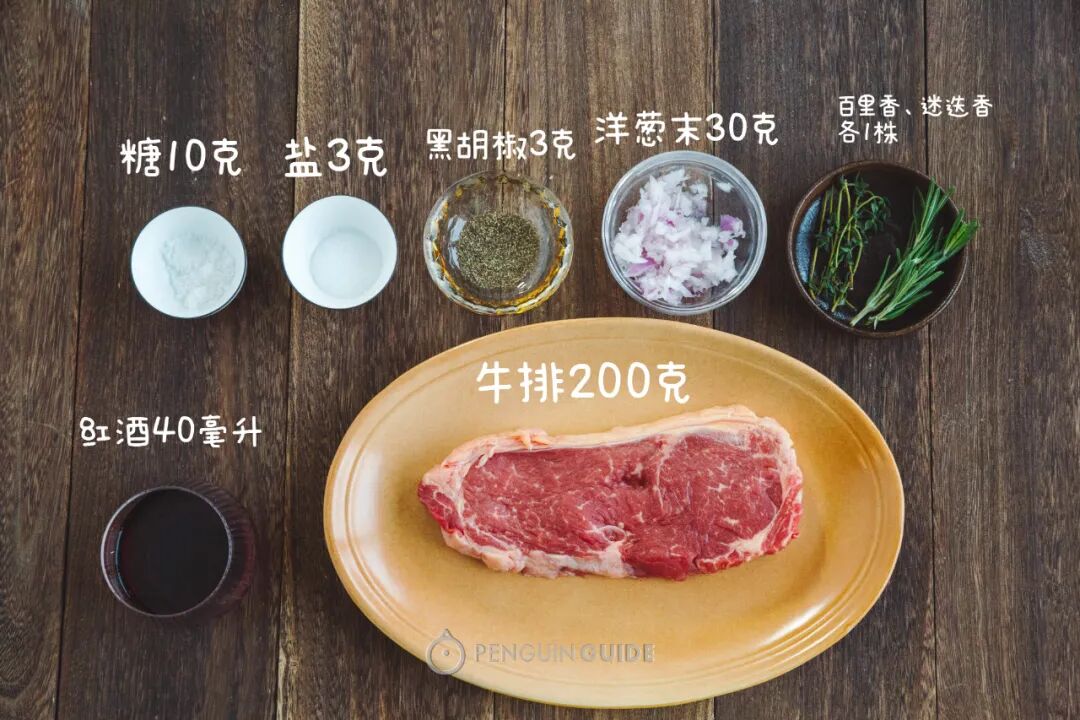 🥩牛排可等量替换成:✅鸡胸肉 ✅猪排肉 🕐推荐腌制时长:冷藏30-60分钟,可过夜腌制(酌情减少红酒、百里香、迷迭香)