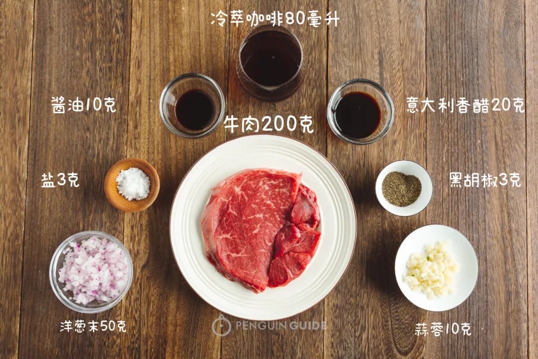 冷萃咖啡风 肉类口感升级的大杀招 🥩牛肉薄片可等量替换成:✅鸡腿肉 ✅猪肉 ❎不适合鱼类 🕐推荐腌制时长:冷藏4-8小时,可过夜腌制(酌情减少蒜蓉、酱油)