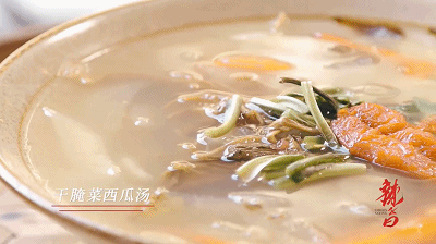 西瓜瓤、干腌菜、大芫荽,滚水煮熟,清新甘甜。