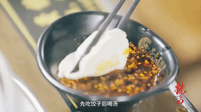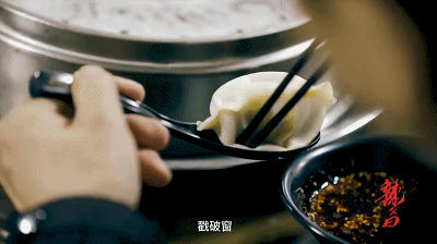 灌汤水饺,先戳破一层薄薄的饺子皮,逼出汤汁。大个的饺子,整只浸在加了油泼辣子的蘸料里,一口吞下,再喝光鲜美的汤;