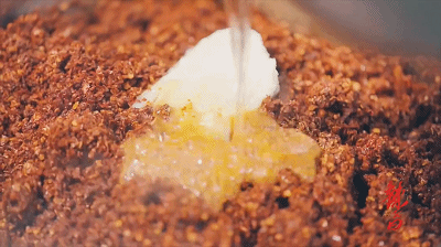 晒干烘焙后,用石磨碾成面。加入盐、芝麻、胡椒,每种调味料,各自发挥功效。