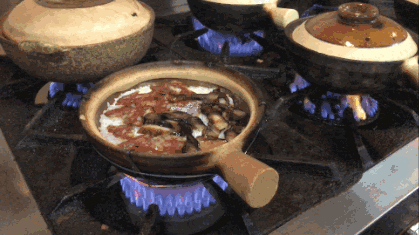 生米加上一两种配菜,砂锅煲被厨师娴熟地操控着。