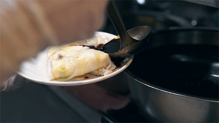 而清蒸海鲜最美的搭档,莫过于出蒸炉前的那一勺秘制豉油