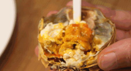 雌蟹体内挤满蟹卵,红膏顶角就是最好的,昔日产妇坐月子首选红鲟补身子。在宁德当地最有名的就是秋天贵歧和漳湾产的红鲟,一般一斤二两左右,膏多肉肥,自是糯米饭的天然搭档。