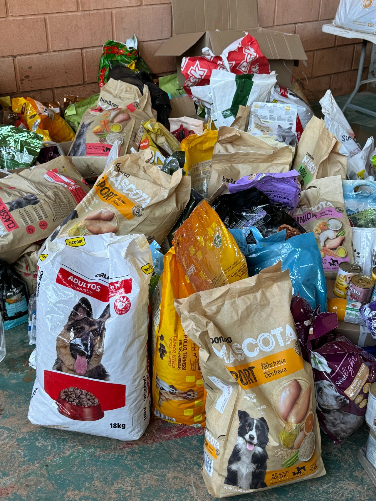 ◆巴伦西亚省阿尔达亚镇,赈灾物资存放处准备了宠物食品。(受访者供图)
