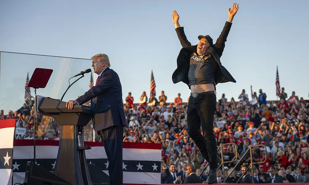 马斯克参加特朗普的竞选活动。图片来源:JIM WATSON/AFP VIA GETTY IMAGES