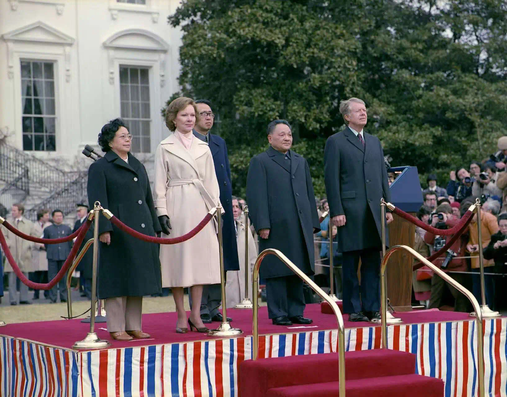 ◆1979年1月29日,卡特夫妇与邓小平夫妇站在一起,这是美方举行的欢迎仪式。