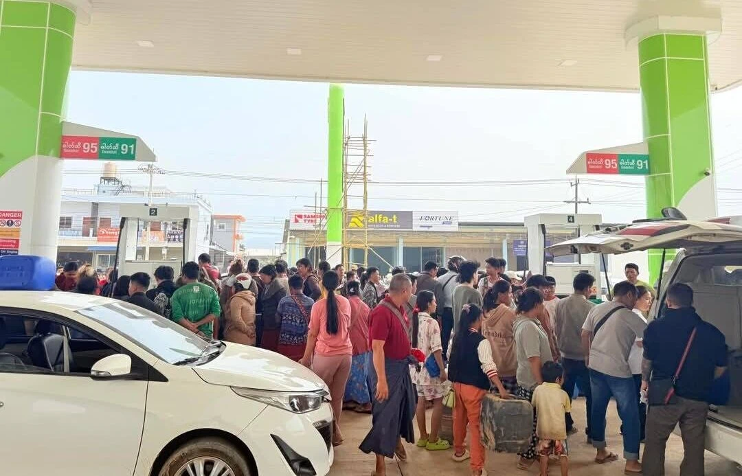 缅甸大其力,购买燃油的民众挤爆当地加油站。