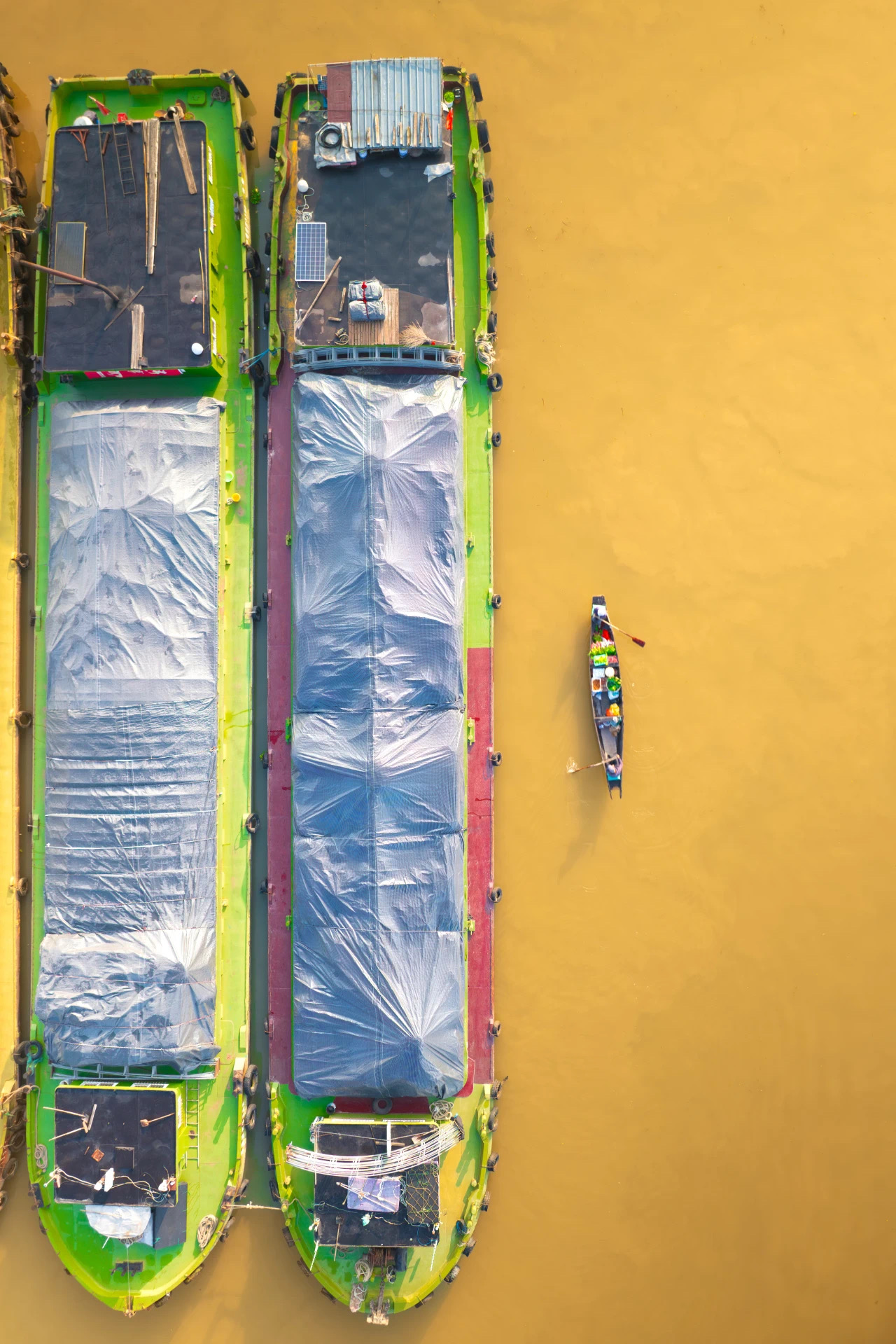 时至今日,大运河仍是运输大宗物资的重要水运通道。 摄影/丁嘉一 又比如,山东、河南运河沿线方言都有一个特殊的韵母“iai”,普通话的“解、街、介”等,会读作“jiai”,普通话的“械、蟹、鞋”会读成“xiai”。而且京剧中也有韵母“iai”,也被认为是江淮方言的遗留。