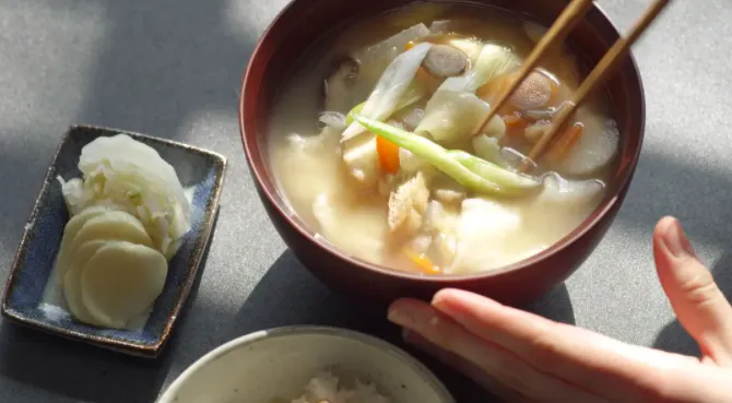 还是在那名学生家里,初尝“一股子薄荷味”的菊花脑。待锅里的水煮沸,调好味,打入鸡蛋搅花,抓一把撒入锅中,漂开后起锅装碗淋上少许麻油——金玉交错,惊为天“汤”。见我一连喝下两三碗,学生家长后来也是好几顿都做了这道汤。现在回想起来,不只是齿颊留芳。那家人备餐的用心,饭点招呼我围桌而坐的热情,时不时夹菜盛汤的周到,笑眯眯看着我吃饱吃好的长辈般的神情……