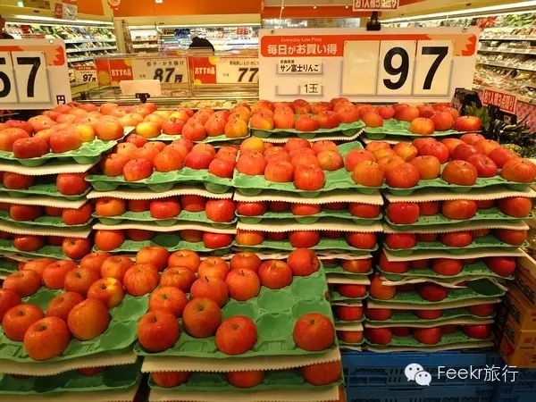 最后大家都说日本水果贵,按个卖的,其实找到打折的比国内还便宜哦。大个的青森苹果才97日元(5元),一个大约有半斤,在国内卖20多人民币一个呢,赶紧拿着吧。↓↓↓