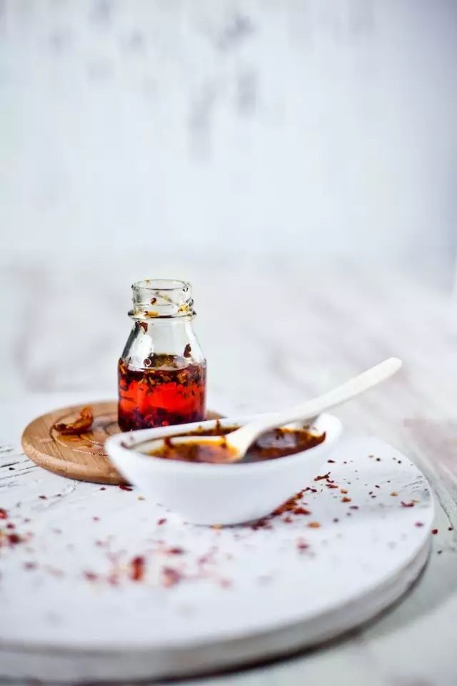 ❷ 炒辣底料:热锅入油,放郫县豆瓣酱,小火炒出红油和香味,然后放入所有香料不停翻炒,直至香味浓郁; ❸ 调制辣汤:在炒好的底料中兑入清鸡高汤,汤量已能没过底料为准,然后转中火煮20-30分钟,融合香味,最后过滤留汤,放凉之后,与适量辣椒油混合,即成冷热皆宜的红油辣汤。