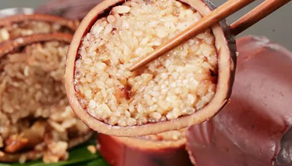 北海道是鱿鱼的著名产地,同时也盛产好吃的大米。秘制酱汁制作的美味鱿鱼中塞入满满米饭。在森站的“キヨスク”店和站外的的“柴田商店”都可以购买。