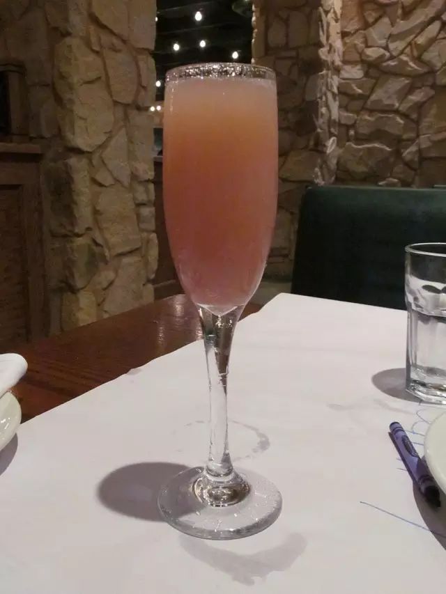 Bellini鸡尾酒,发泡葡萄酒+桃子酒+石榴糖浆