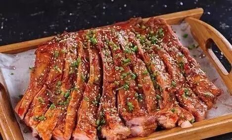 烤羊排是地道的蒙古美食,属清真菜。蒙古人把一只羊劈成四份,叫四条腿。每条腿都带着排骨、脊骨部分,而烤羊排则是剔除了腿骨、腿肉的做法。外焦里嫩,肉烂味香,具有补血、补虚养身、补阳等功效。