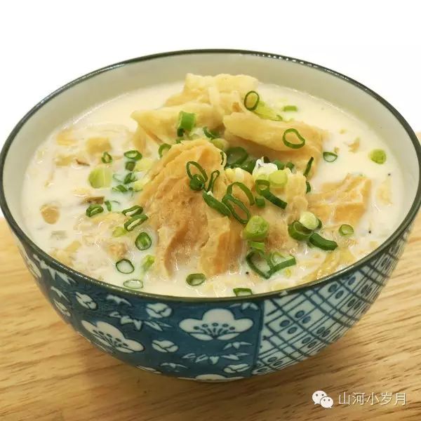 大饼该配油条,配大饼油条的,永远是豆浆。上海人管“豆浆”叫“豆腐浆”,分为甜咸两种,甜的加糖,咸的丰富,加酱油、辣油和葱花,还有虾皮、紫菜以及剪成一小段一小段的油条。