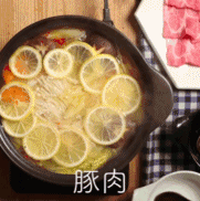 4.揭开就能涮肉啦~用柠檬锅底涮猪肉、牛肉,也是很清爽呢~
