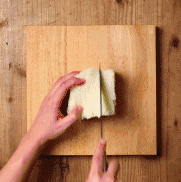 2.把面包中间一块挖出来。