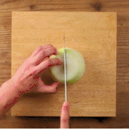 1.洋葱去头切十字,但不要完全切到底。然后放进微波炉中火6分钟。