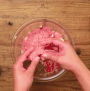 1.切姜末,把馄饨皮切成条状。然后把肉馅混合洋葱、姜末、淀粉、酱油、芝麻油等,一起揉啊揉啊揉啊。