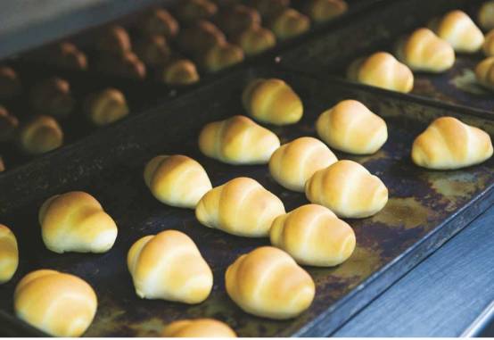 店内共有八位面包师傅。面包的制法一直没变过,每一个师傅们手工制作而成的。其中,有的已经是有40余年经验的大前辈。