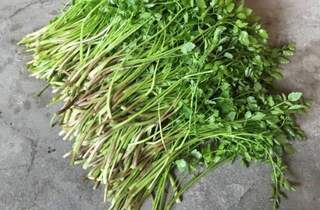 水芹又名野芹菜,是一种生长在池沼边、河边和水田里的水生蔬菜。幼苗、嫩叶味道鲜美,自古即作为野菜食用。《吕氏春秋·本味》曰:"菜之美者,云梦之芹。" 这里所说的就是水芹。其味道鲜美、口感脆嫩,富含多种维生素和无机盐类,其中以钙、磷、铁等含量较高,经常食用该水芹菜具有清洁人的血液,降低人的血压和血脂等功效,所以说水芹菜既是食用又是药用的高档无公害草本蔬菜。