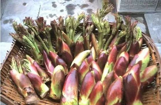 明代罗永恭曾这样描写蕨菜:"堆盘炊熟紫玛瑙,入口嚼碎明琉璃。溶溶漾漾甘如饴,但觉馁腹回春熙。"说的正是蕨菜的色香味俱全。蕨菜又叫拳头菜、猫爪、龙头菜, 喜生于浅山区向阳地块,中国大部分地区均有,其食用部分是未展开的幼嫩叶芽,经处理的蕨菜口感清香滑润,再拌以佐料,清凉爽口,是难得的上乘酒菜,还可以炒吃,加工成干菜,做馅、腌渍成罐头等。山珍蕨菜是满汉全席九白宴中的一道菜,被称为"山菜之王",是不可多得的野菜美味。但有研究表明,蕨菜中含有"原蕨苷",牛羊食用过量会导致死亡,人食用会导致癌症的发病率提高,因此食用蕨菜应注意适量。