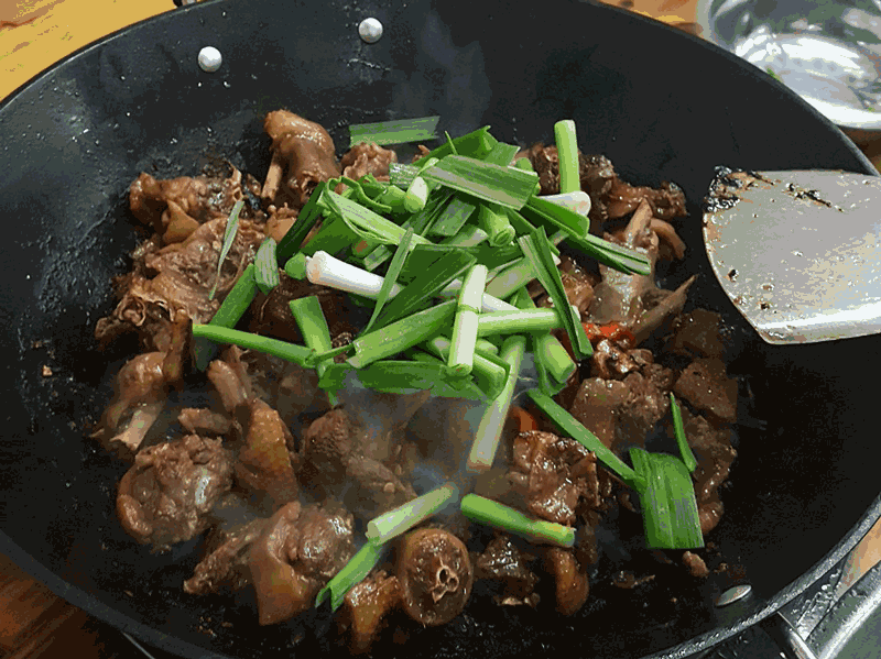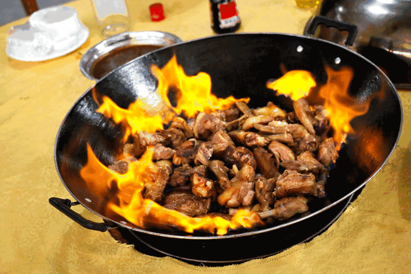 再把盖子盖好,一把火点燃,就看到锅边的火苗开始攒动。等火焰消失就可以开锅了,酒香加上酱香铺面而来,筷子不知怎么就插到锅里了。