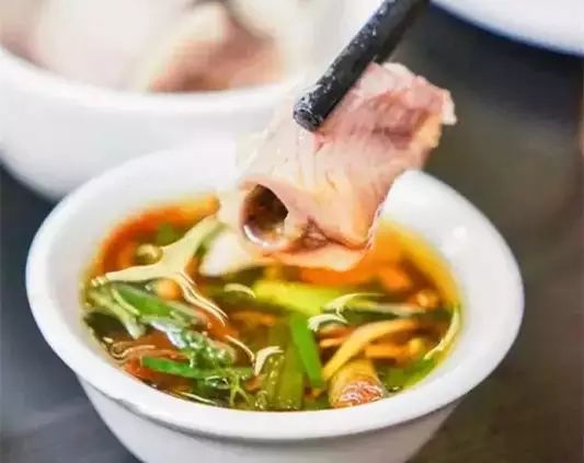 牛骨髓、牛百叶、牛脷、牛肉都是必吃,这里和潮洲牛的吃法不一样,只是用几片羗(qiāng)放入白开水里来涮。涮上几秒就可以吃,要严格按秒数才能吃出最棒的口感。