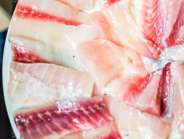 起片剔骨考验的是刀工,明仔家的鲫鱼,真的是起到一条刺都没有!晶莹剔透的鱼片,大小均一,还没下锅就口水欲滴。