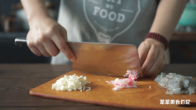 1.金针菇切末,处理好的虾中间切开后切末,蟹腿肉拨成丝备用。