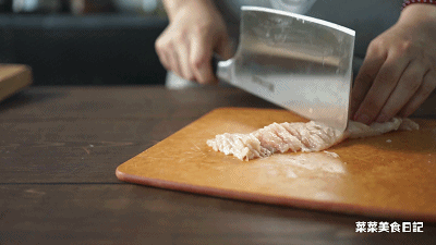 3.鸡胸肉用刀背剁成鸡腻子(即粘连不散的鸡蓉)