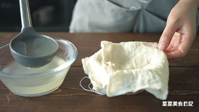 5.吊好的清汤,再用四层纱布过滤至汤清澈,按个人口味调入少许盐和胡椒粉