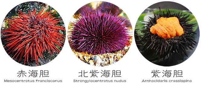 海胆的种类不计其数,全世界现存约有1000种海胆,化石700种以上。在国内我们吃到的来自大连和北朝鲜的马粪海胆,还有日本北海道的虾夷马粪海胆和北紫海胆。国内常见的黄海胆,在日本的名称叫津轻海胆,以下几种是常见品种。